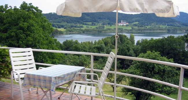 - Großer Balkon (ca. 15 m²) mit herrlichem Seeblick, 2 Relaxliegen